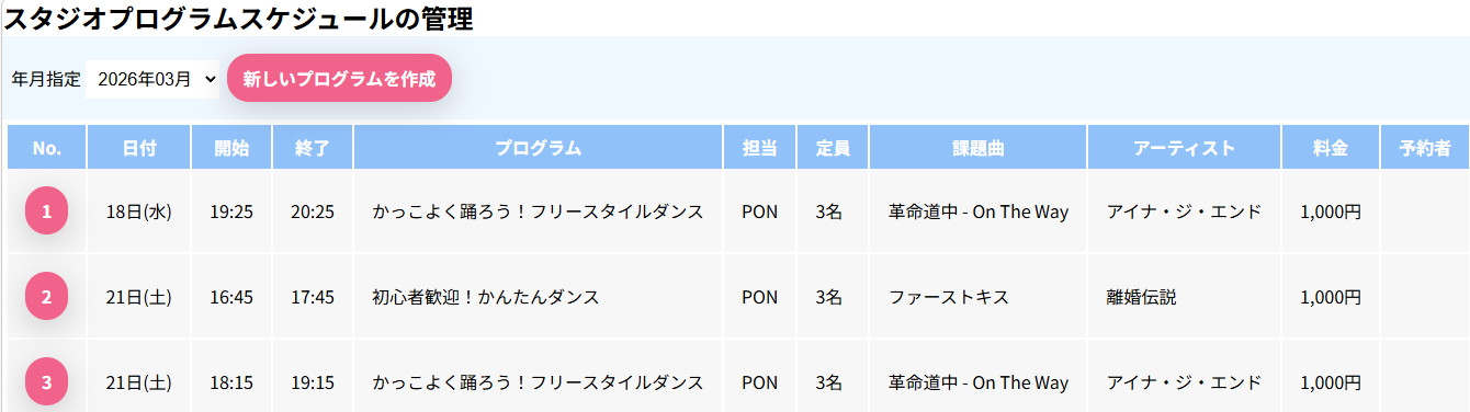 スタジオプログラムの登録(管理者機能)